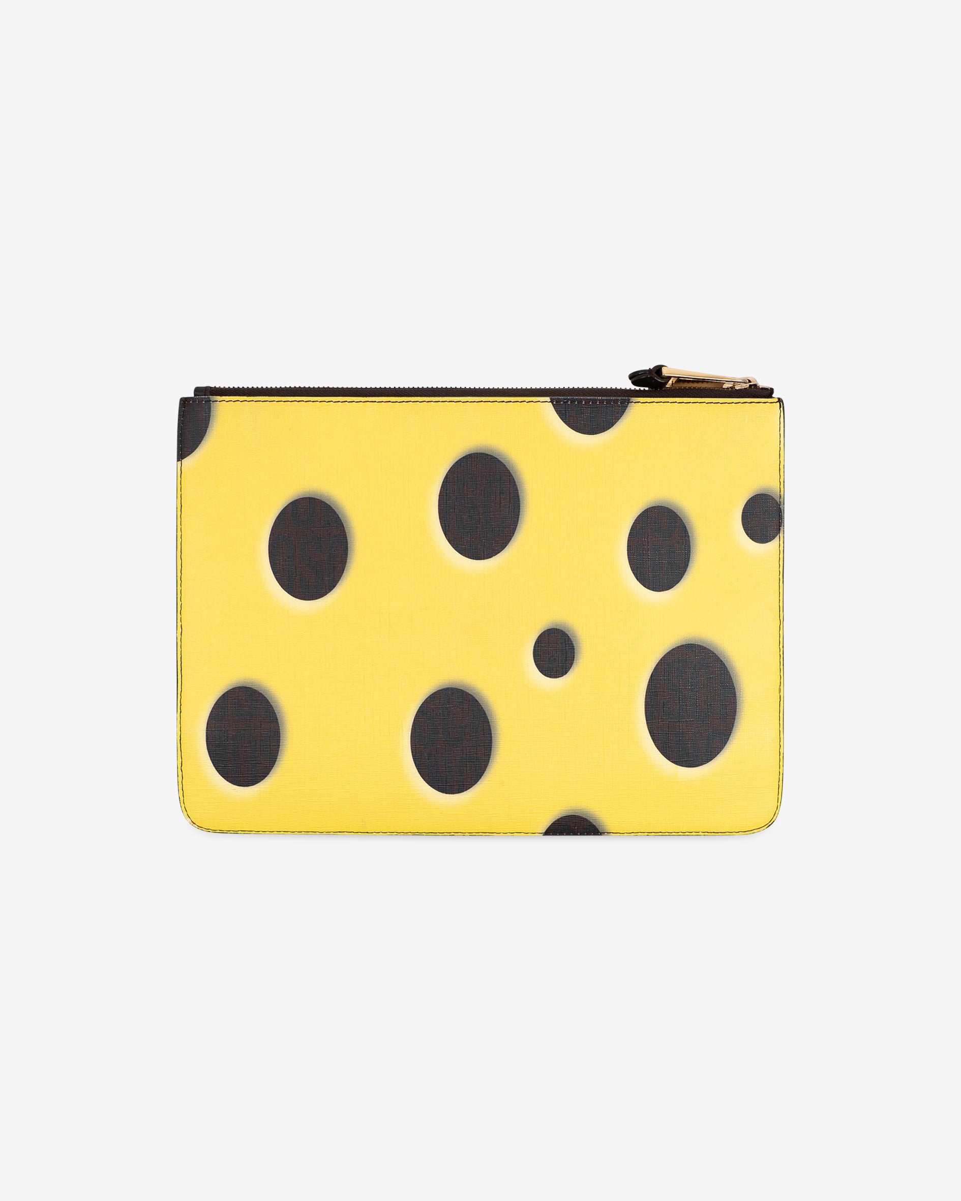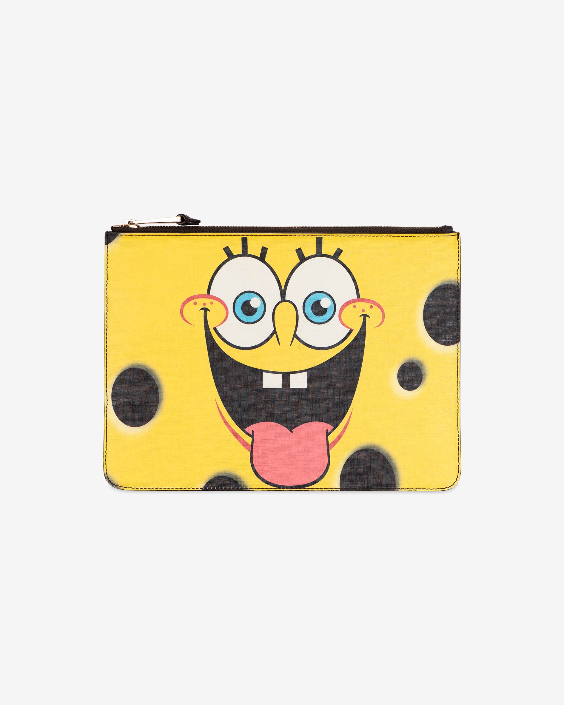 Iconic Nickelodeon Spongebob and Moschino Milano collaboration rectangular wallet with fold-over-flap design, 6 card holder slits, big coin buttoned purse and extra slit for banknotes.