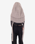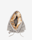 One size; unique faux fur hood with zip detail and adjustable straps.