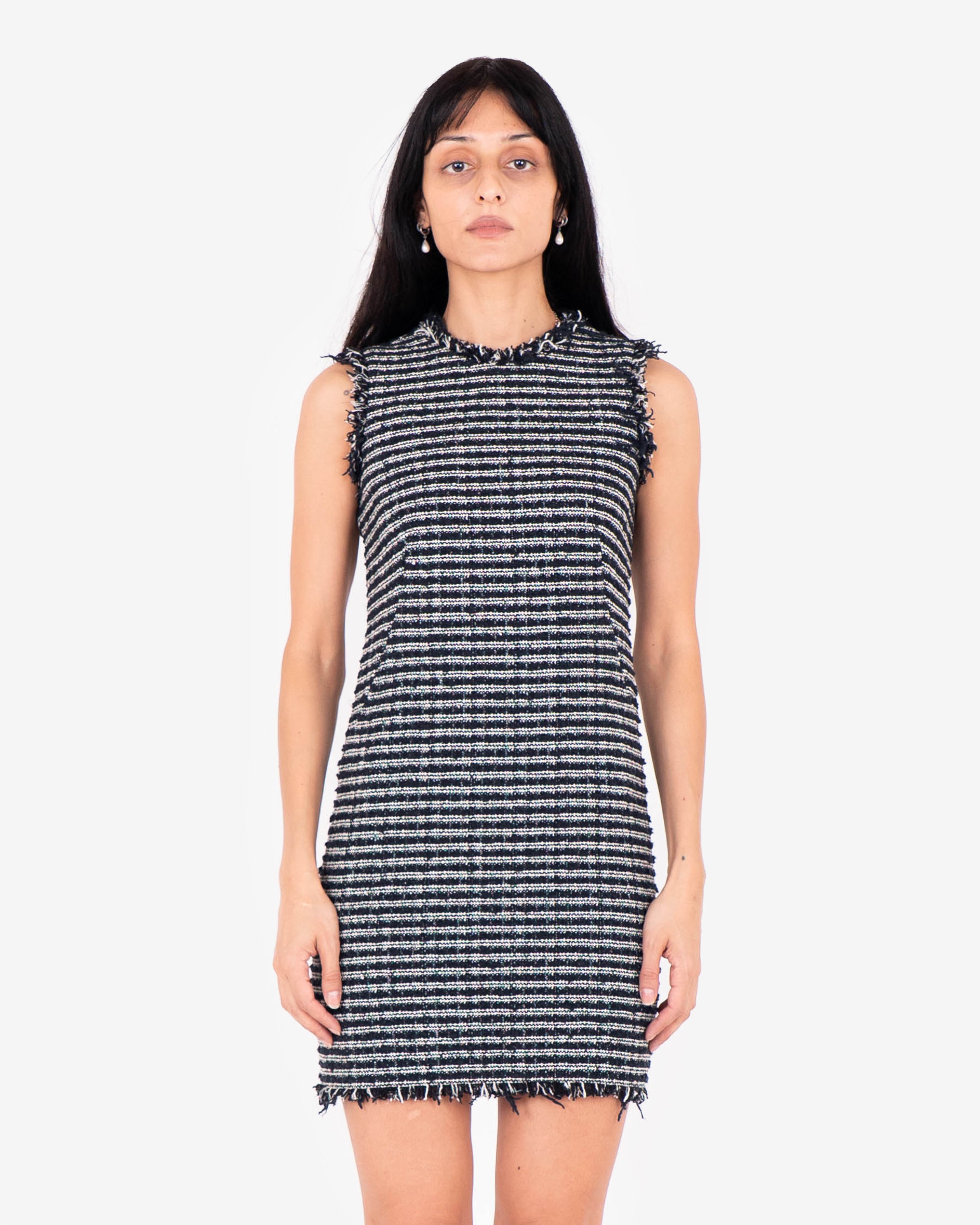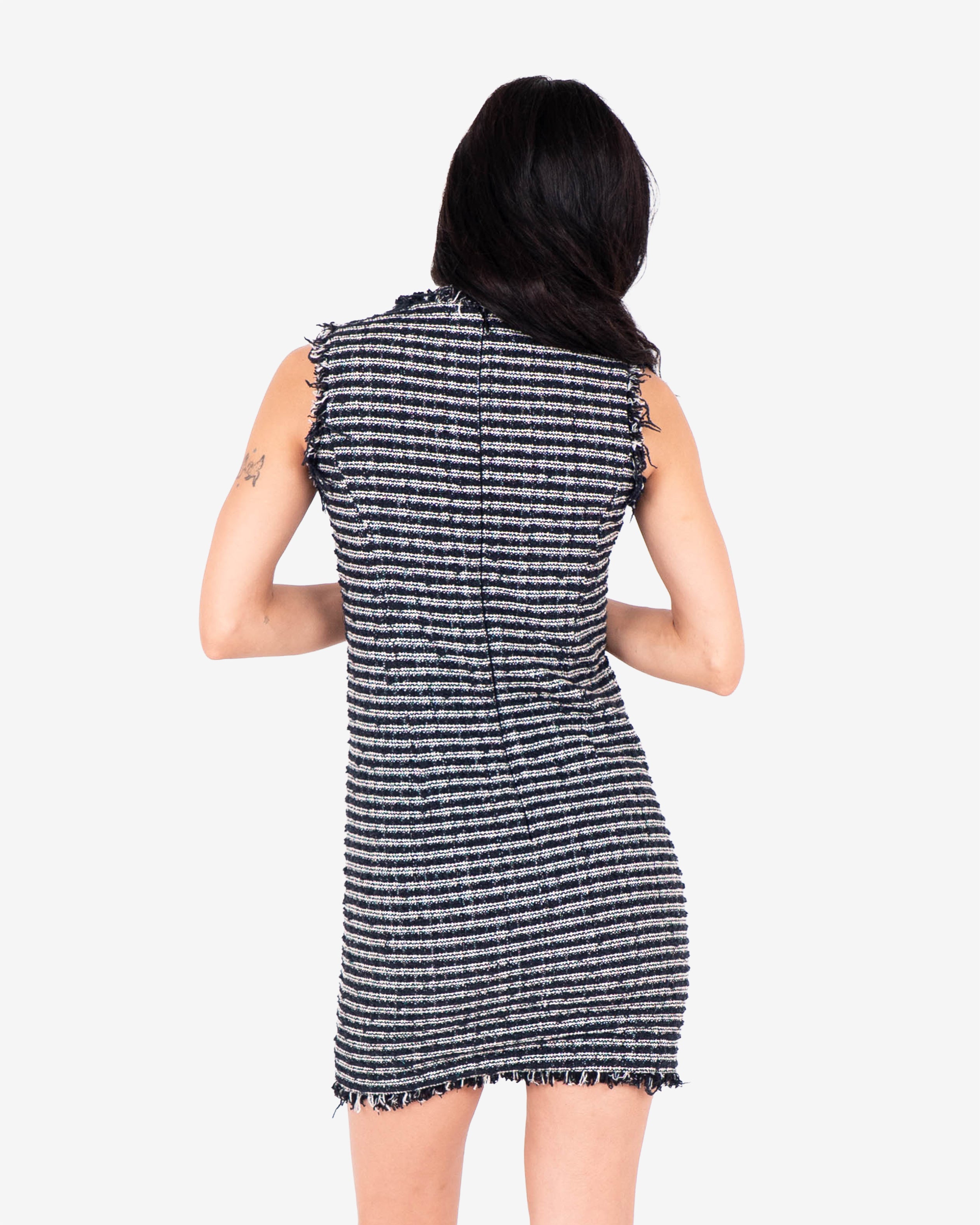 Sleeveless Frayed Tweed Dress