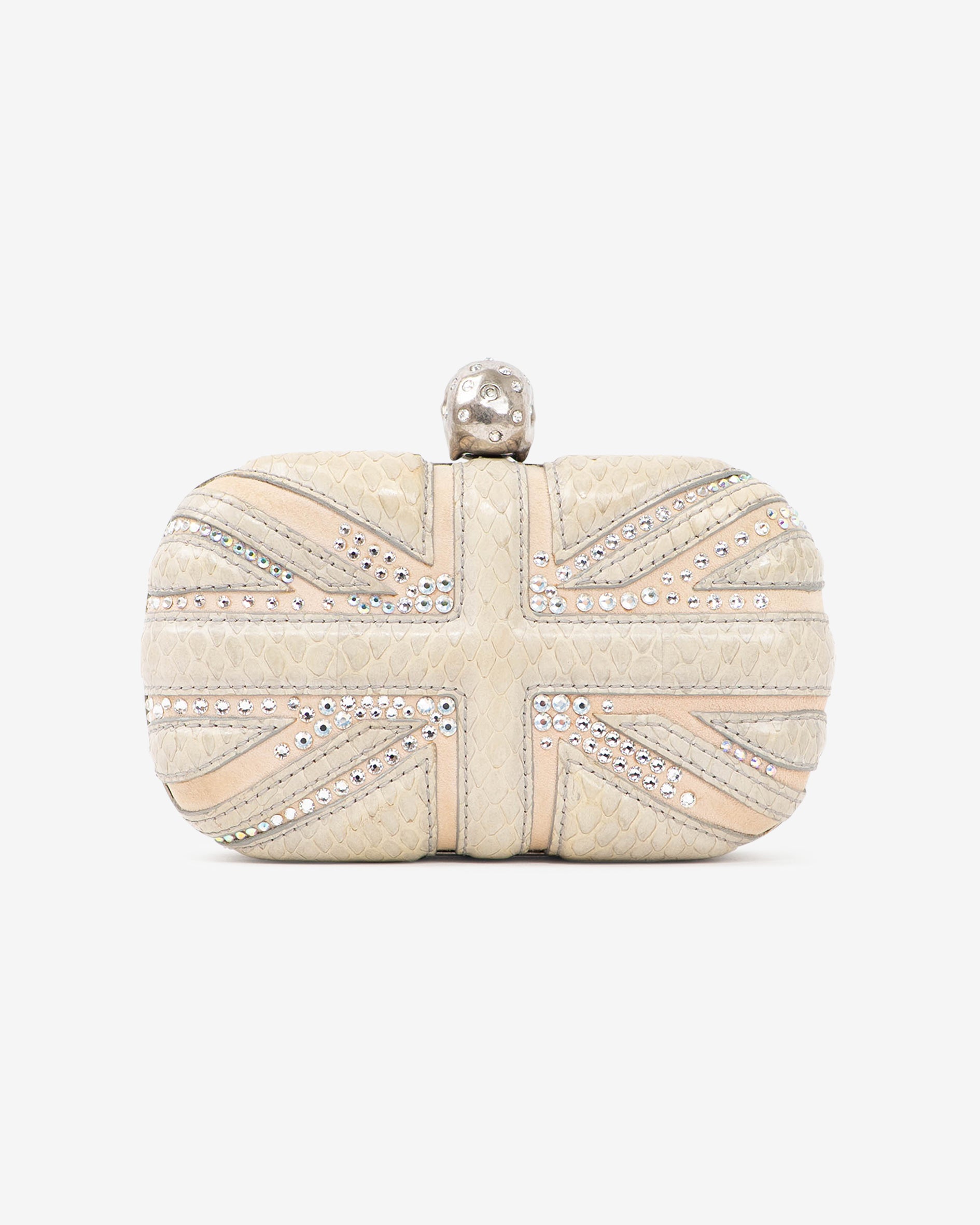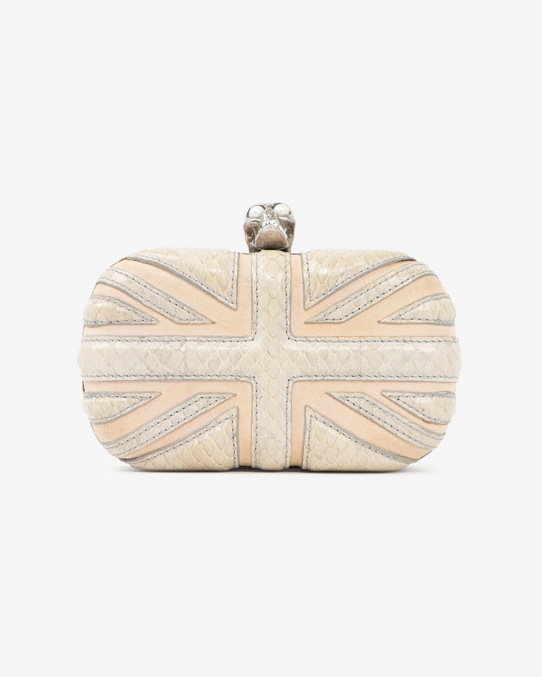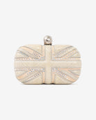 Cream Union Jack Skull Box Clutch