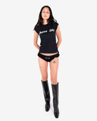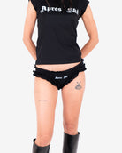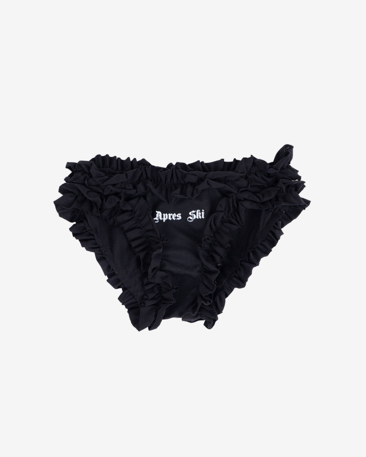 Ruffled panty featuring white gothic style "Apres Ski" front print.