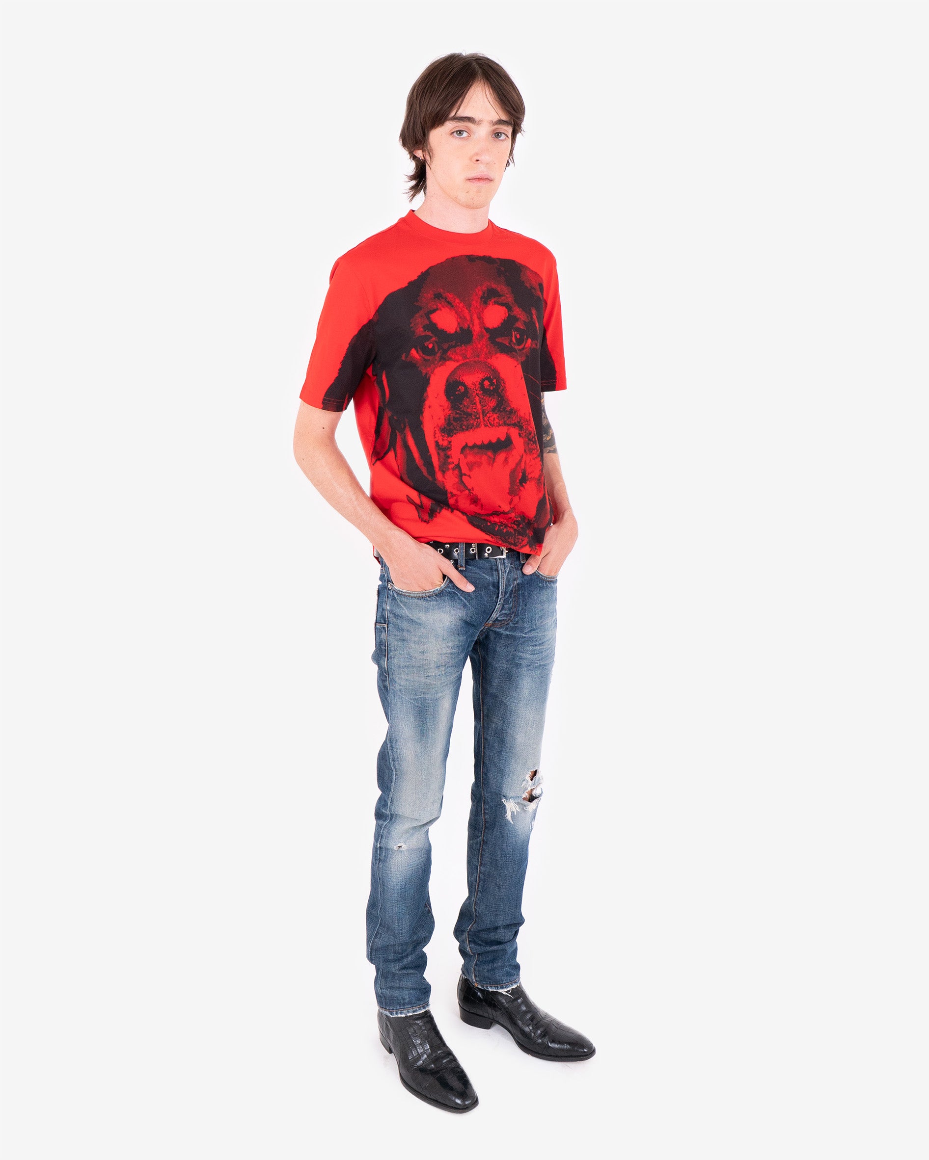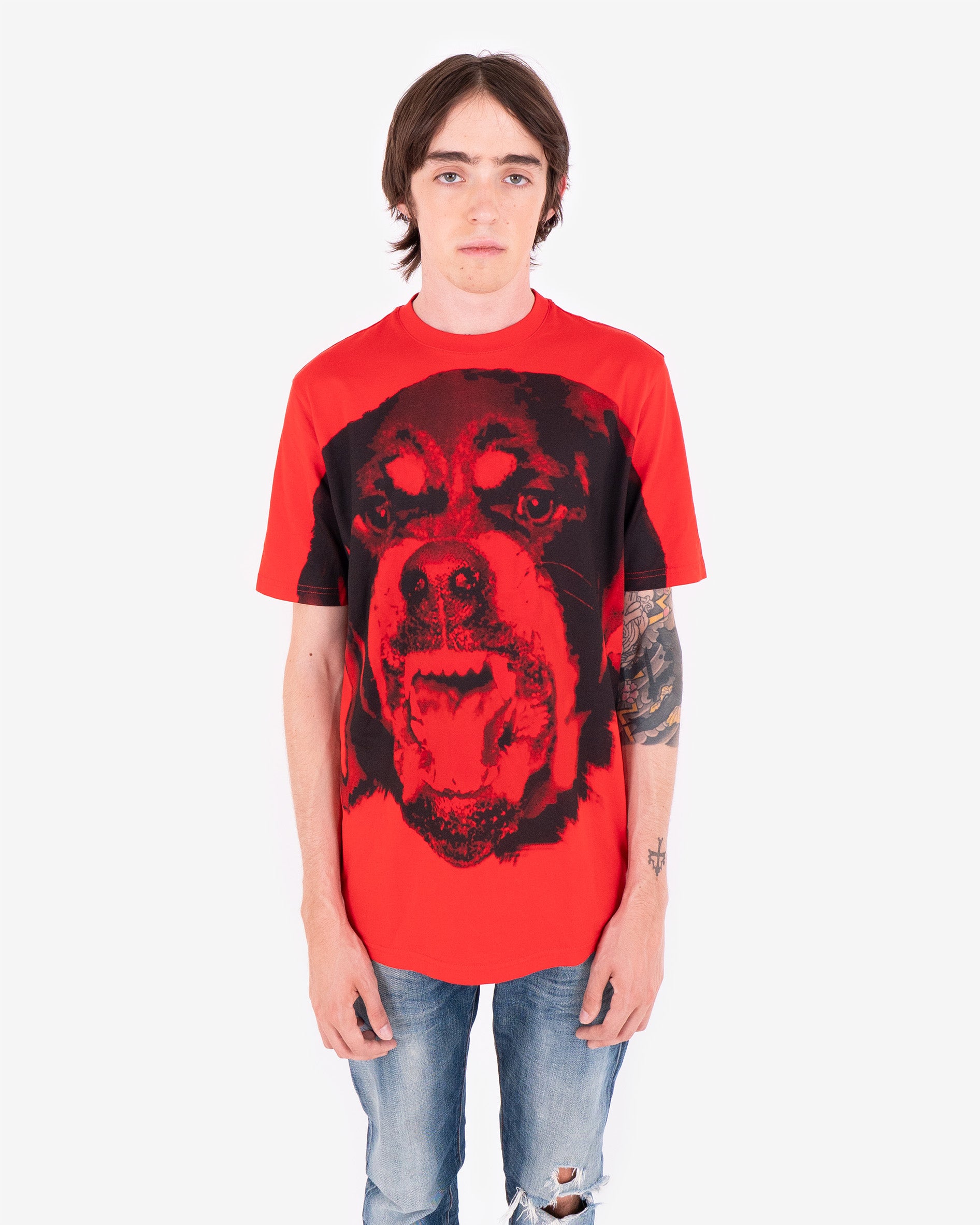 Unisex oversize fit t-shirt with Tisci's signature animal designs for Givenchy, featuring a large Rottweiler printed across front chest.
