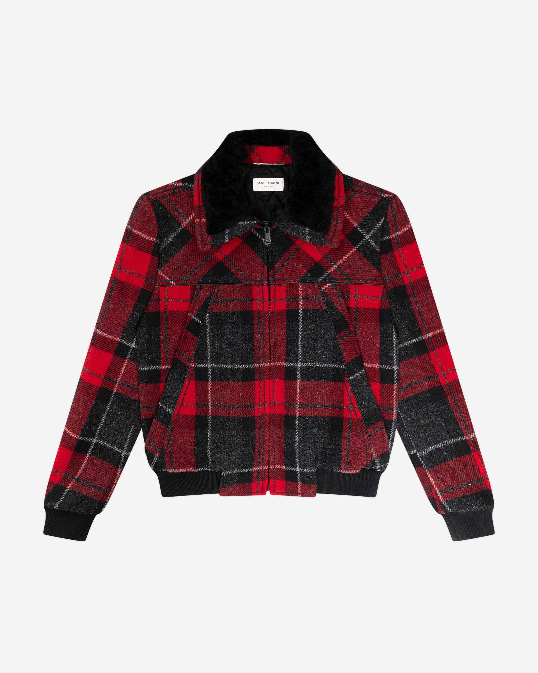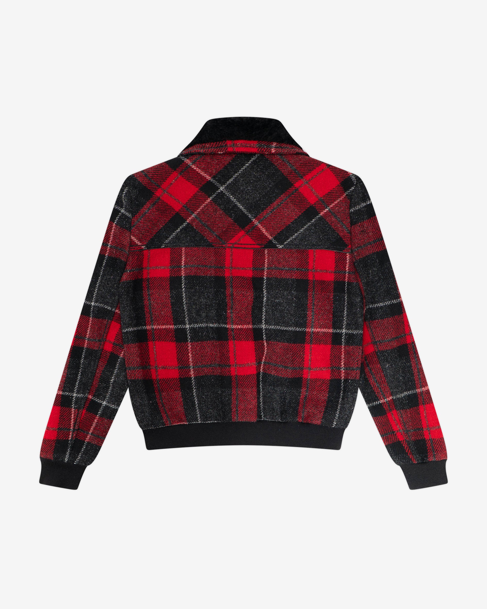 Red Tartan Print Wool Shearling Jacket