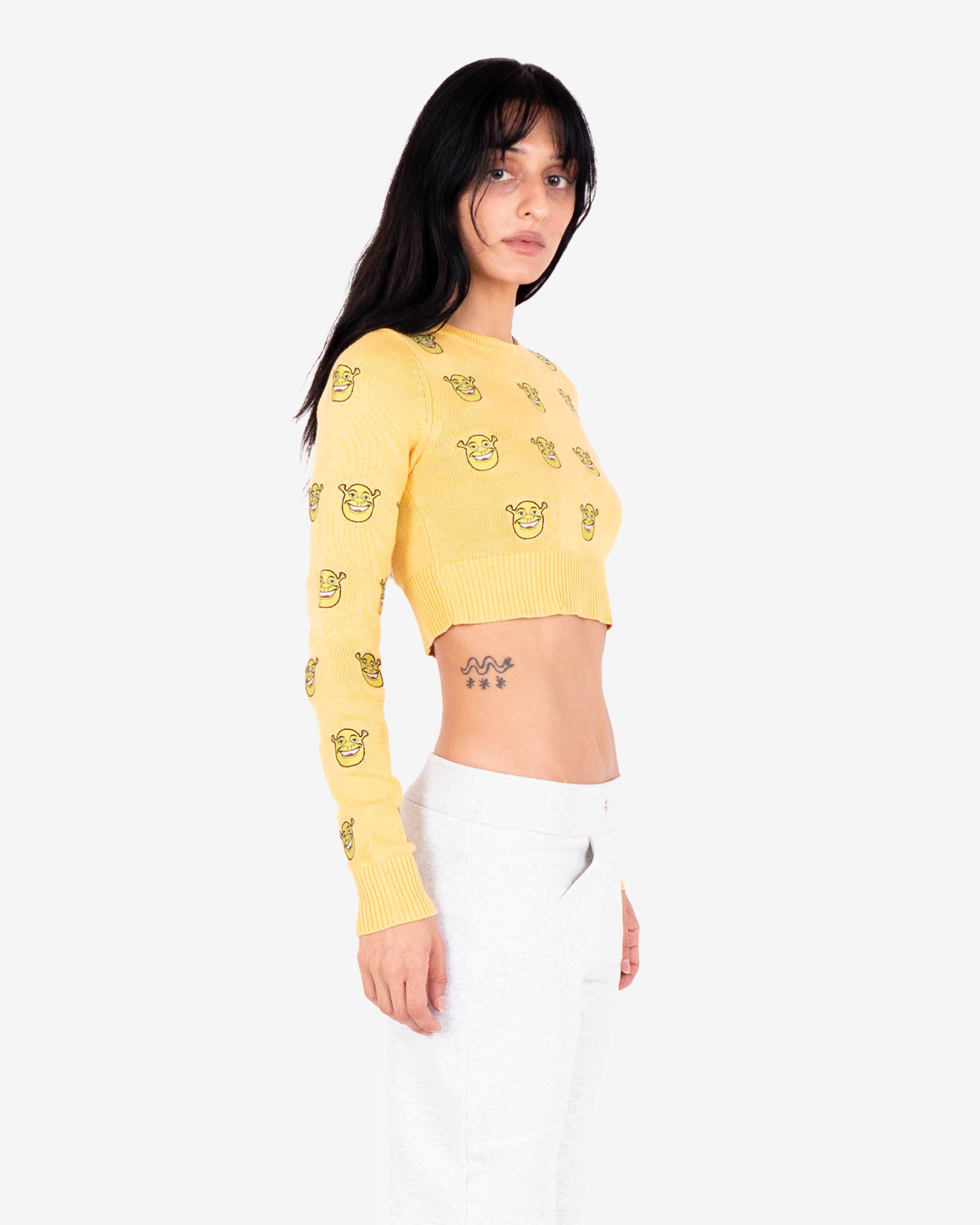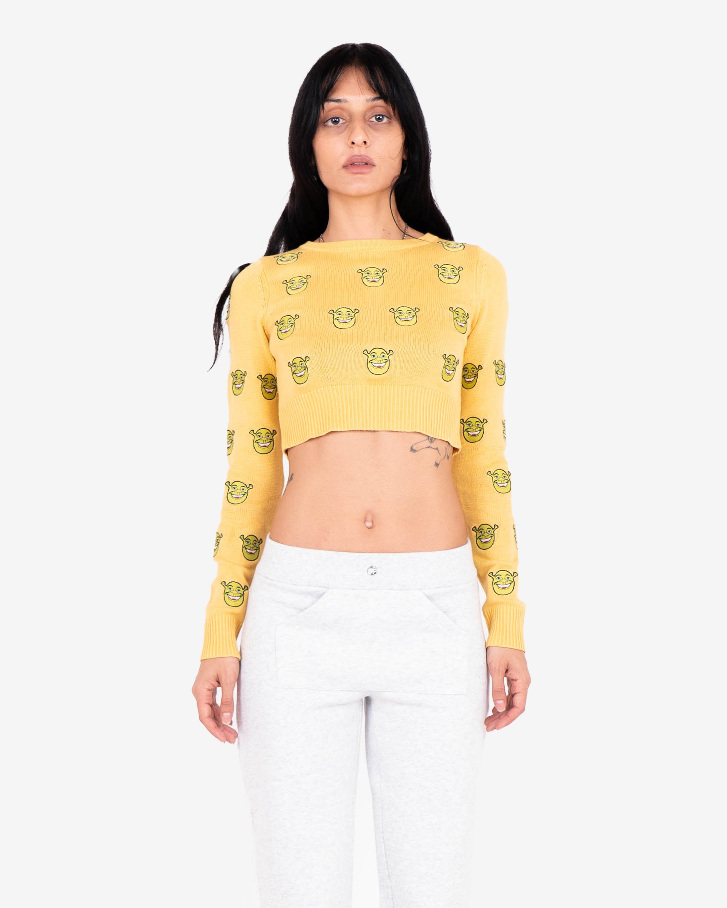 Collaboration between Jeremy Scott and Dreamswork's Shrek. Somebody had to do it! As seen on Leigh Lezark.