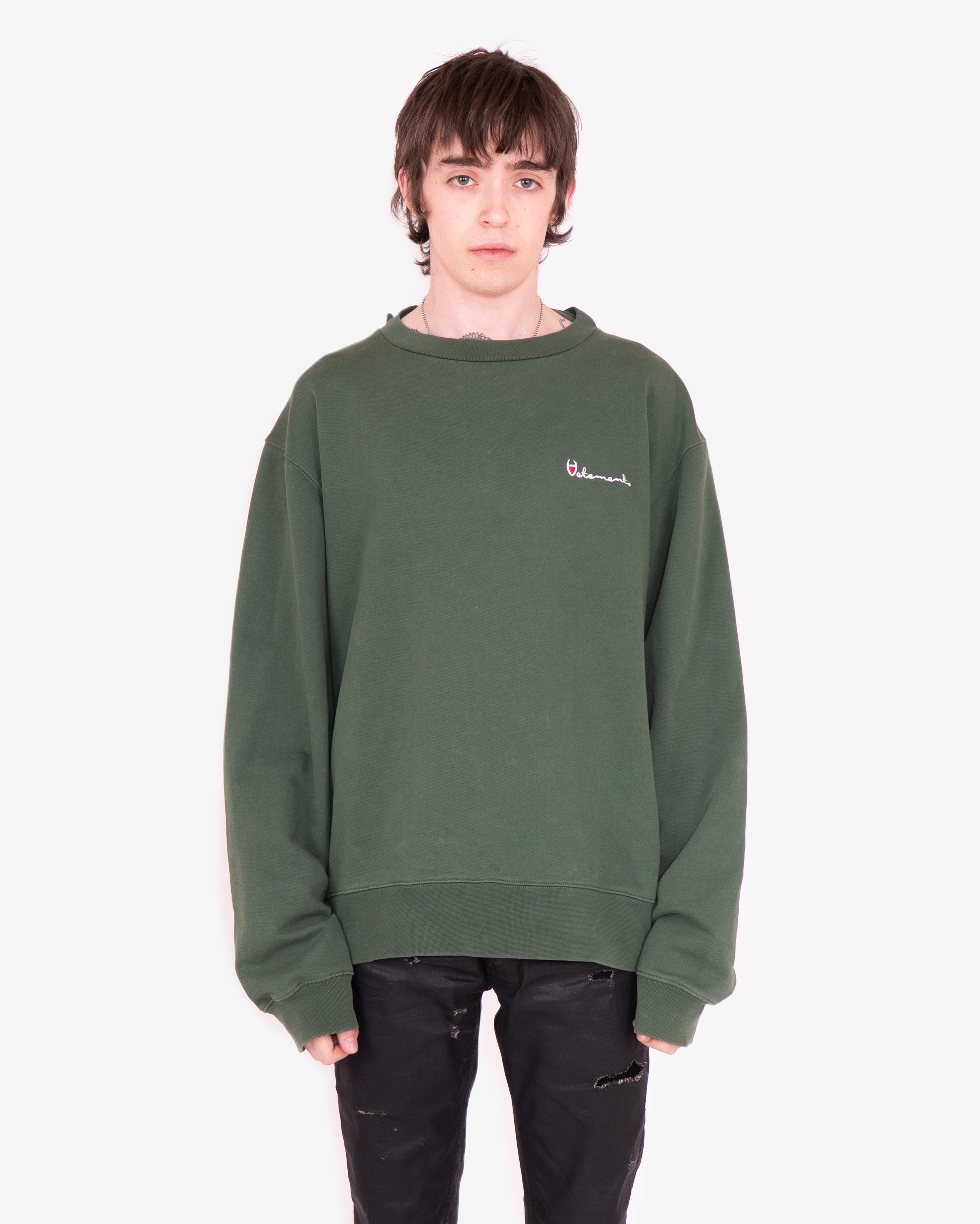 Iconic sweatshirt from the peak era of Vetements, easily one of Demna's best collections for the brand. Can be worn on both sides and comes with a detached double collar detail. Features "parody" Champion logo on one side, and German police logo on the other. Fit is very oversized, as is typical for the brand.