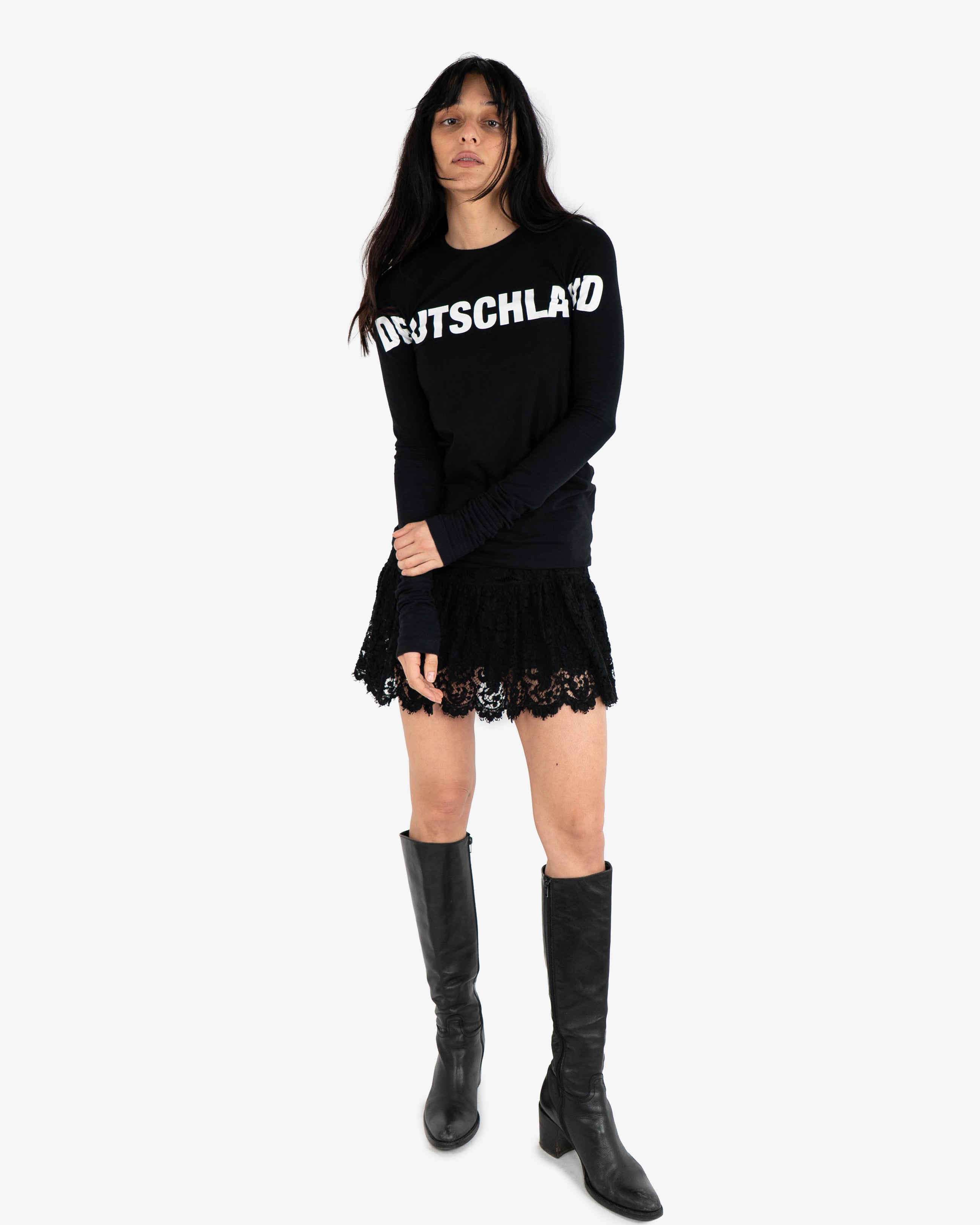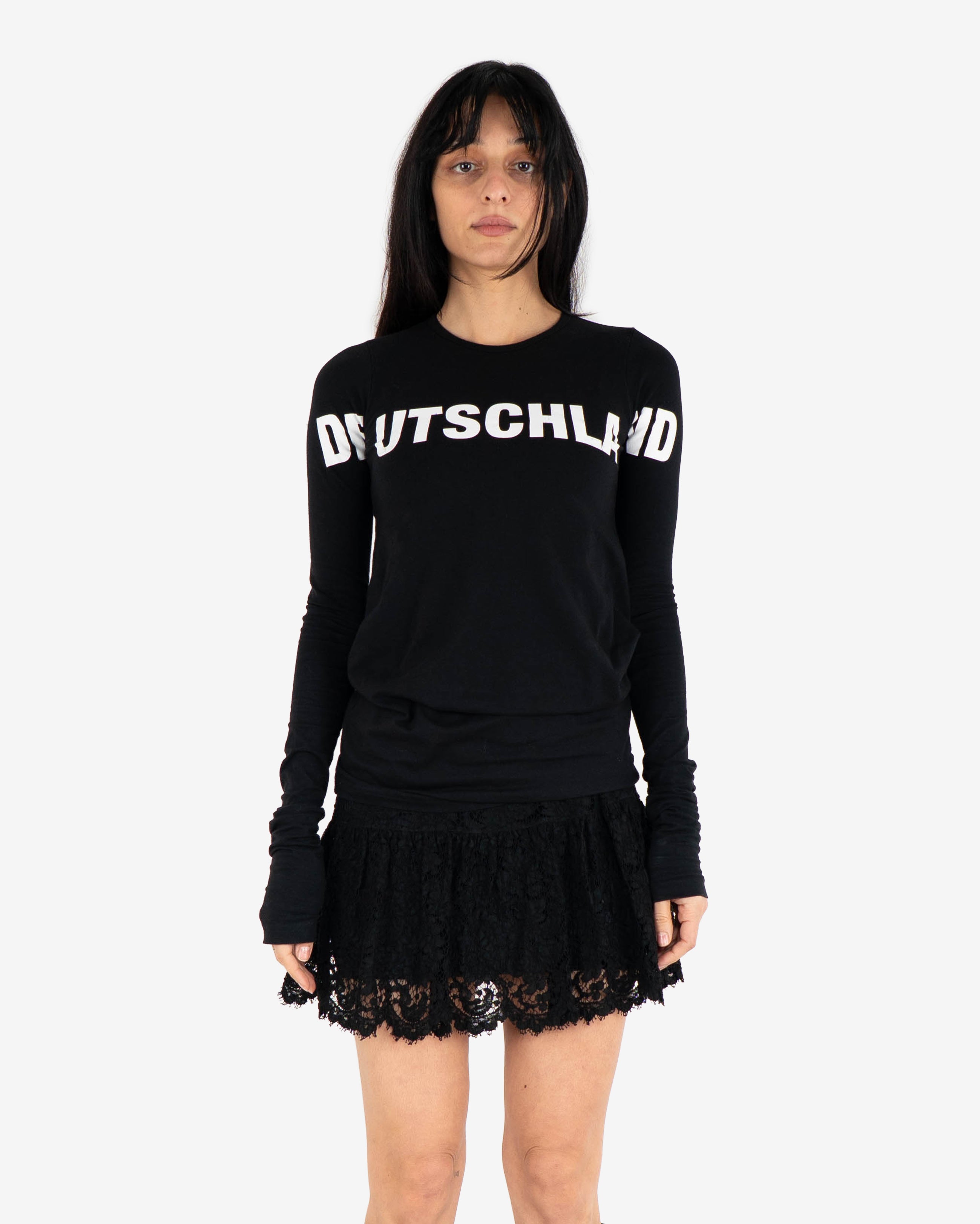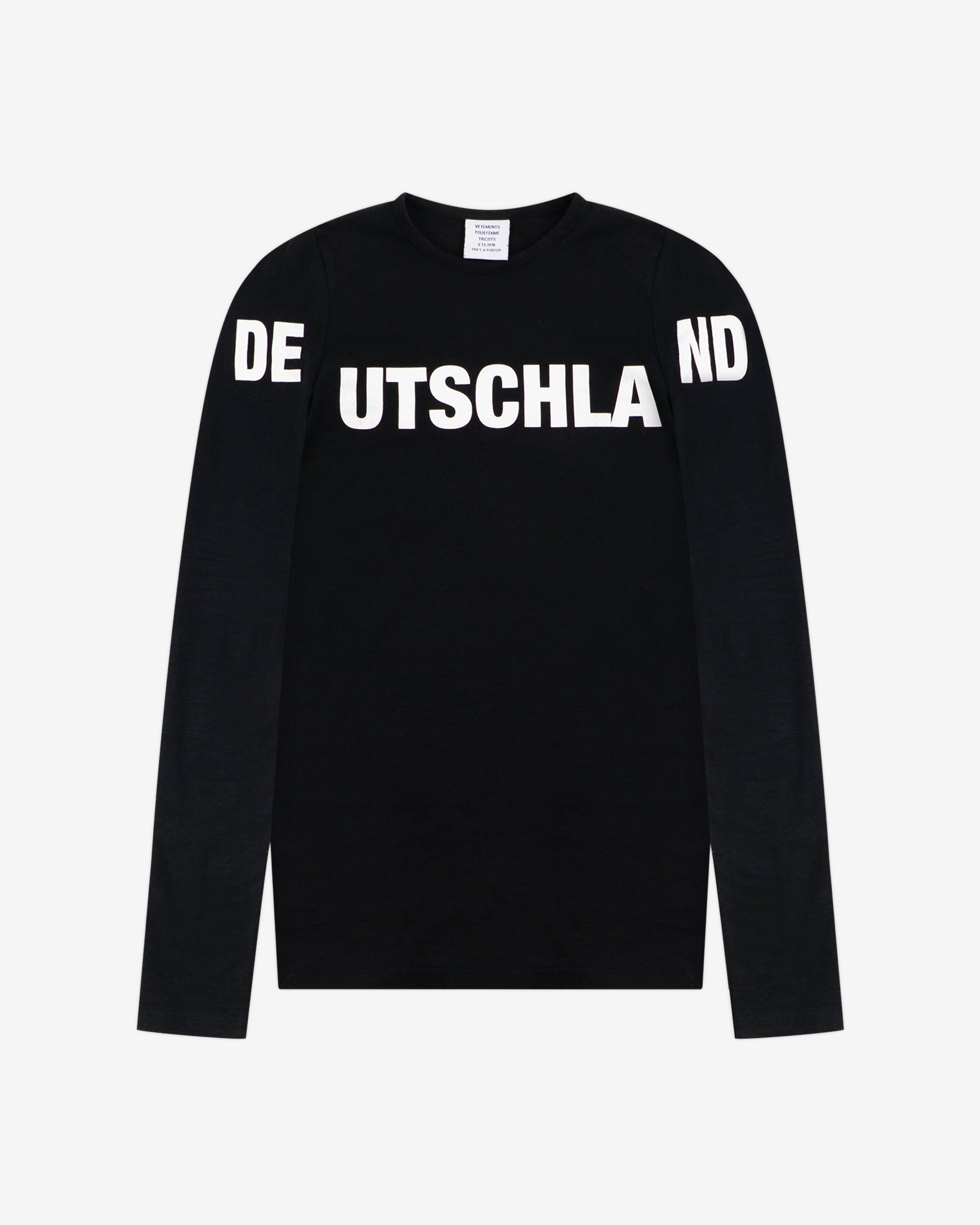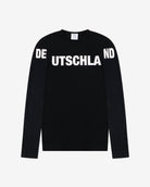 Deutschland" long-sleeve T-shirt featuring white "DEUTSCHLAND" graphic split across the chest and sleeves