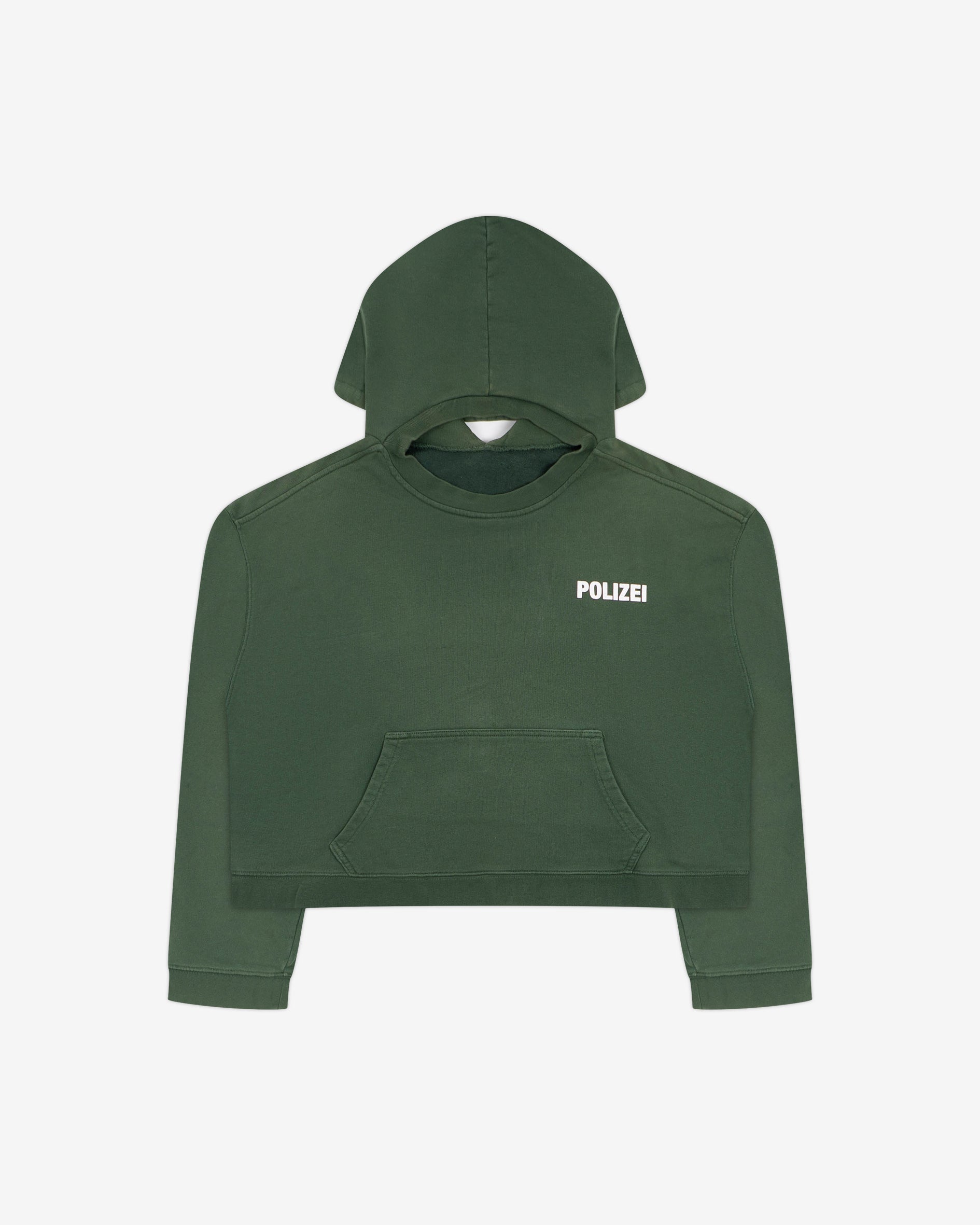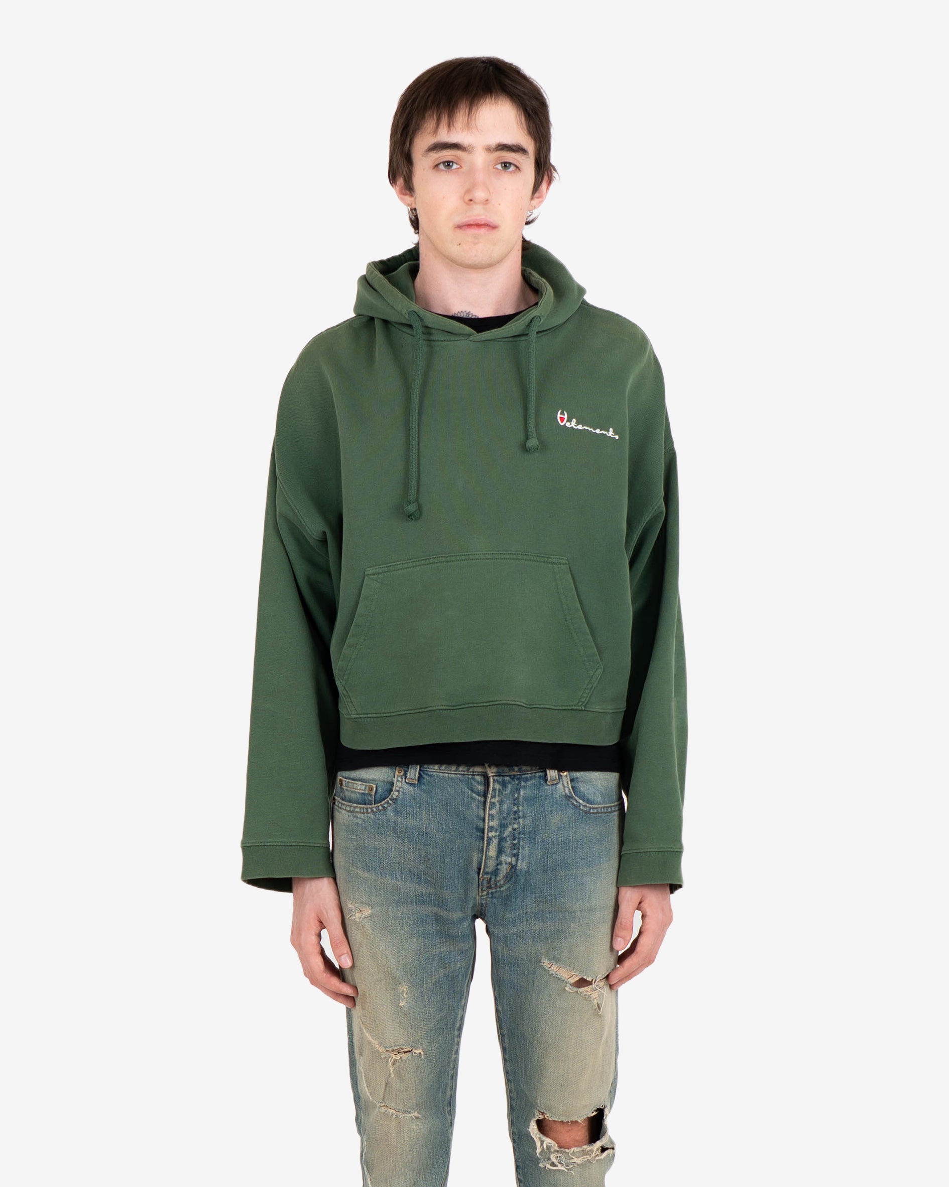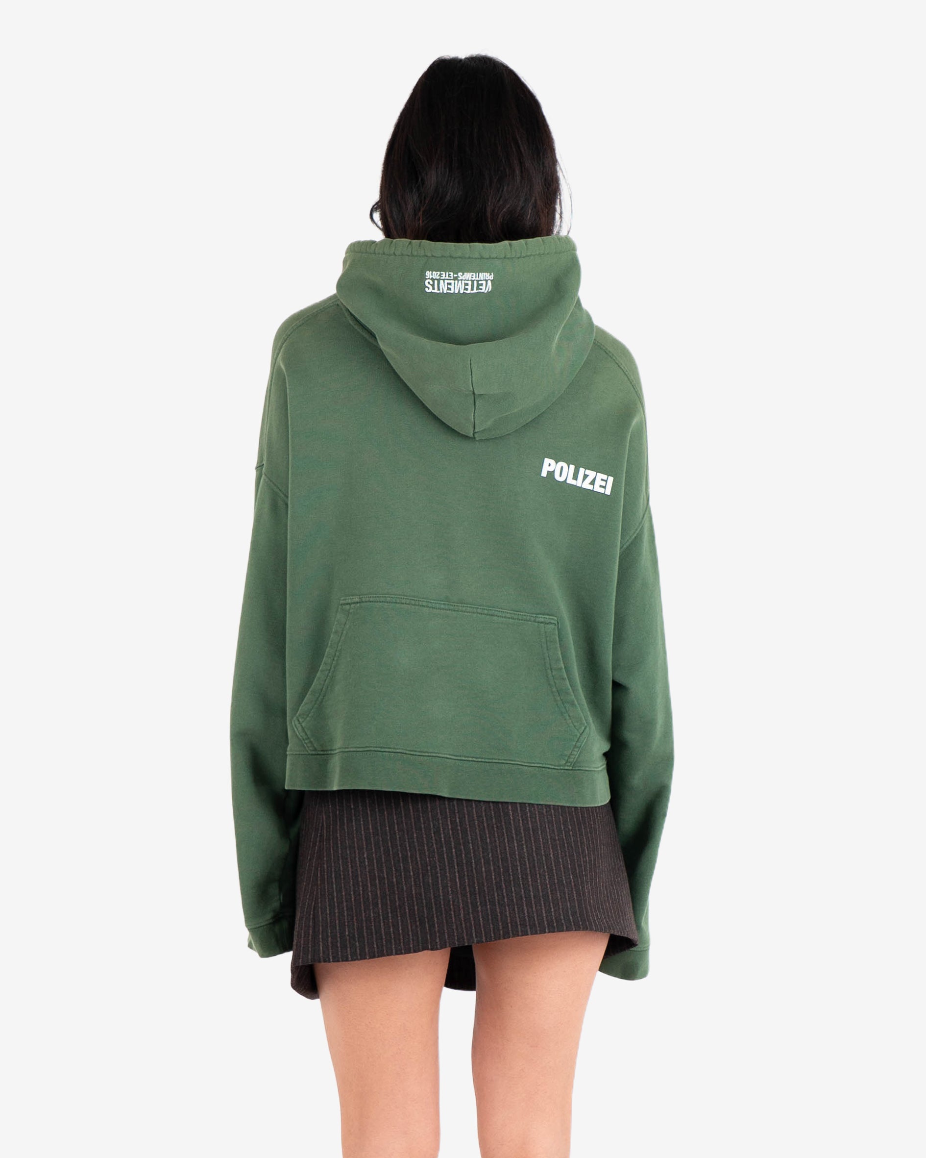 Iconic hoodie from the peak era of Vetements, easily one of Demna's best collections for the brand. Features "parody" Champion logo on one side, and German police logo on the other. Fit is very oversized, as is typical for the brand.
