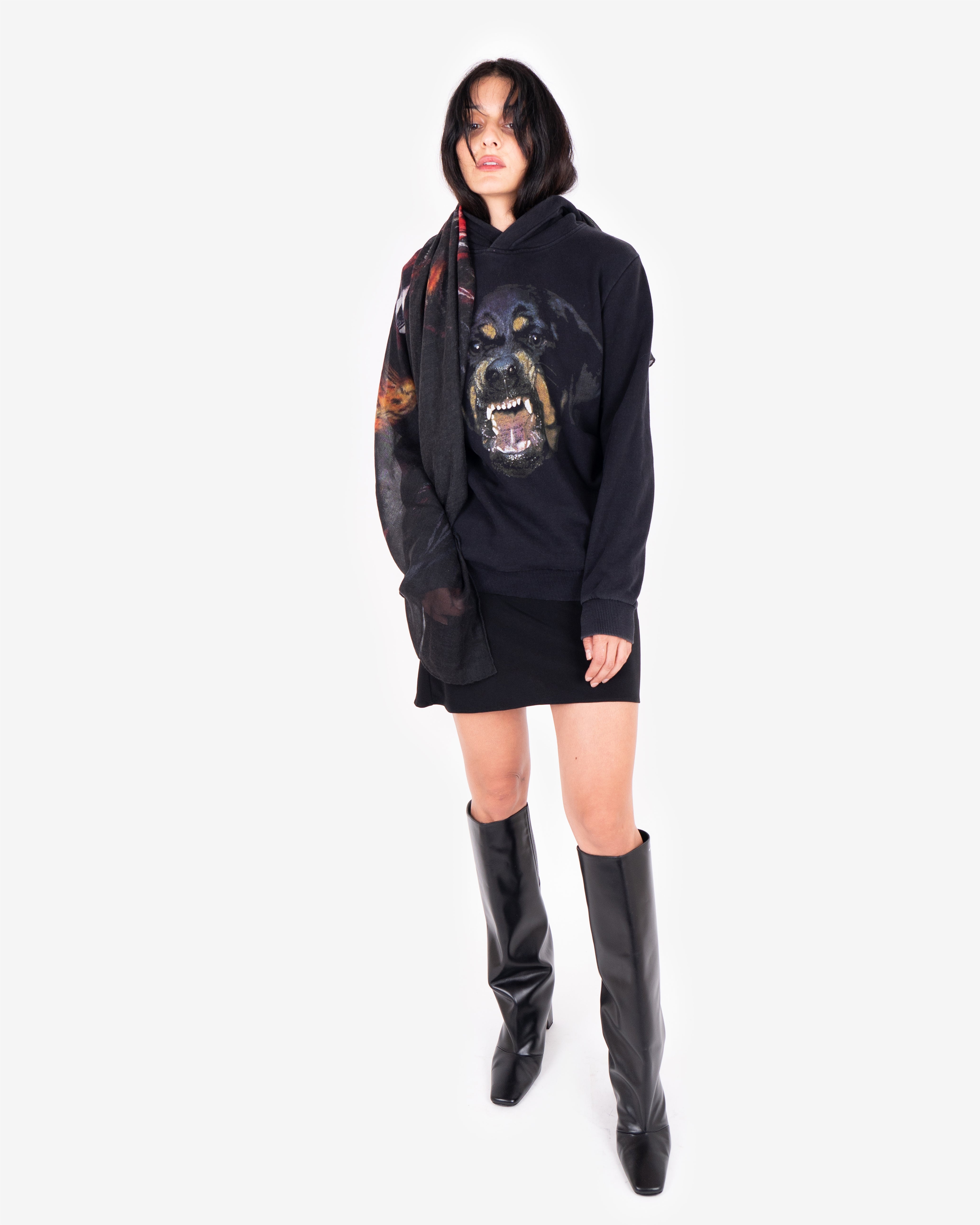Square Rottweiler scarf featuring a very soft and thin cashmere silk blend.